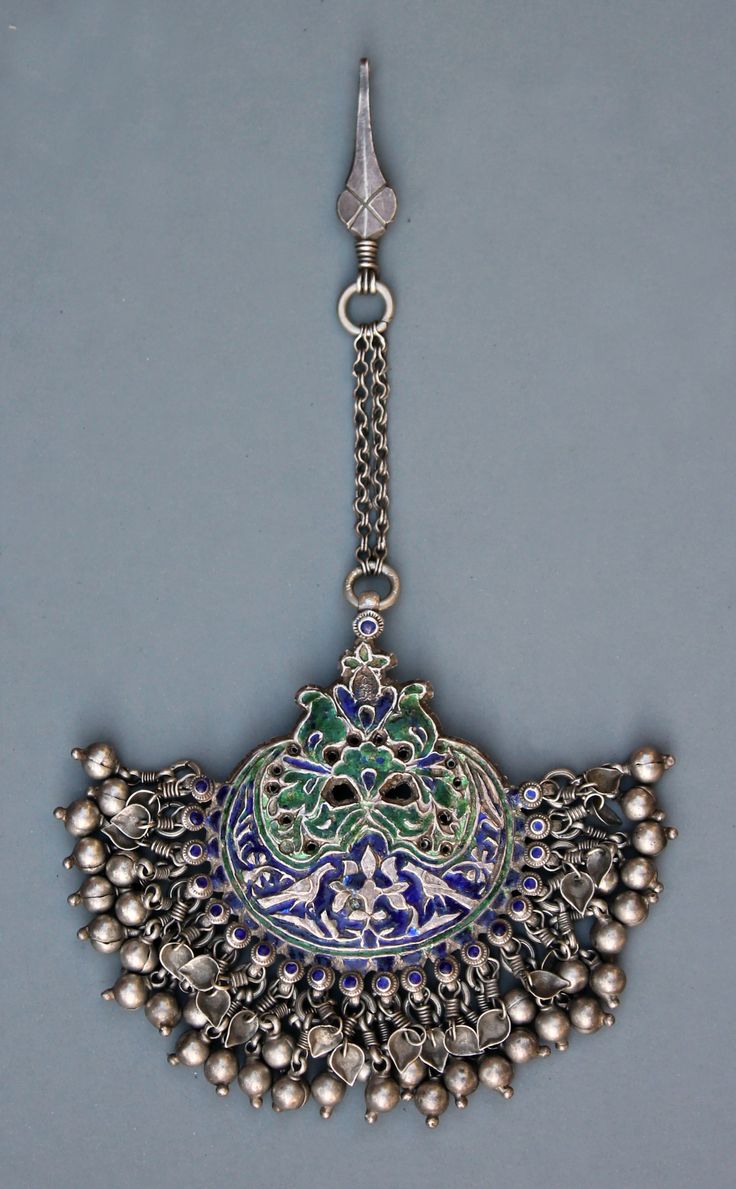 For example, the bride of the Gaddi tribe of Himachal Pradesh wears an enormous maangtika on her head as one component of her ornament. It has vibrant solid-color enamel on the ornament.