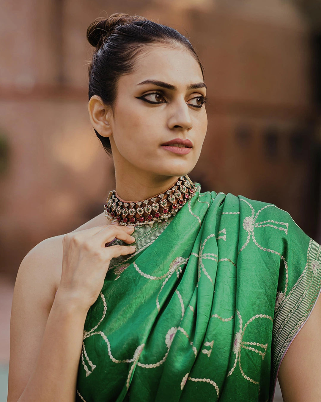 "Opulent emeralds spell luxury for a day function, be it the mehendi ceremony