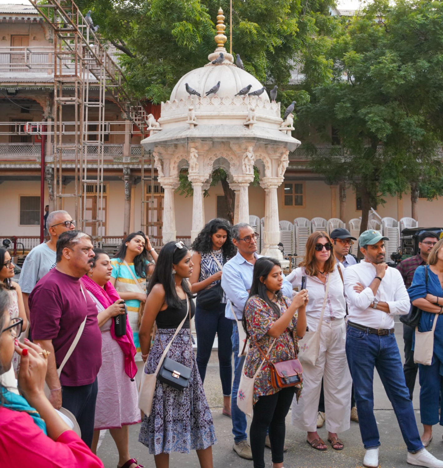 Within the haveli's timeless walls, the day unfolded, providing a series of never-like-before experiences, starting with an immersive and insightful talk where three celebrated custodians of legacy—Jayshree Lalbhai of the Lalbhai lineage, Umang Hutheesing, the current scion of the Hutheesing lineage, and Princess Mrinalini Kumari of Lunavada—shared personal stories about their family jewels.