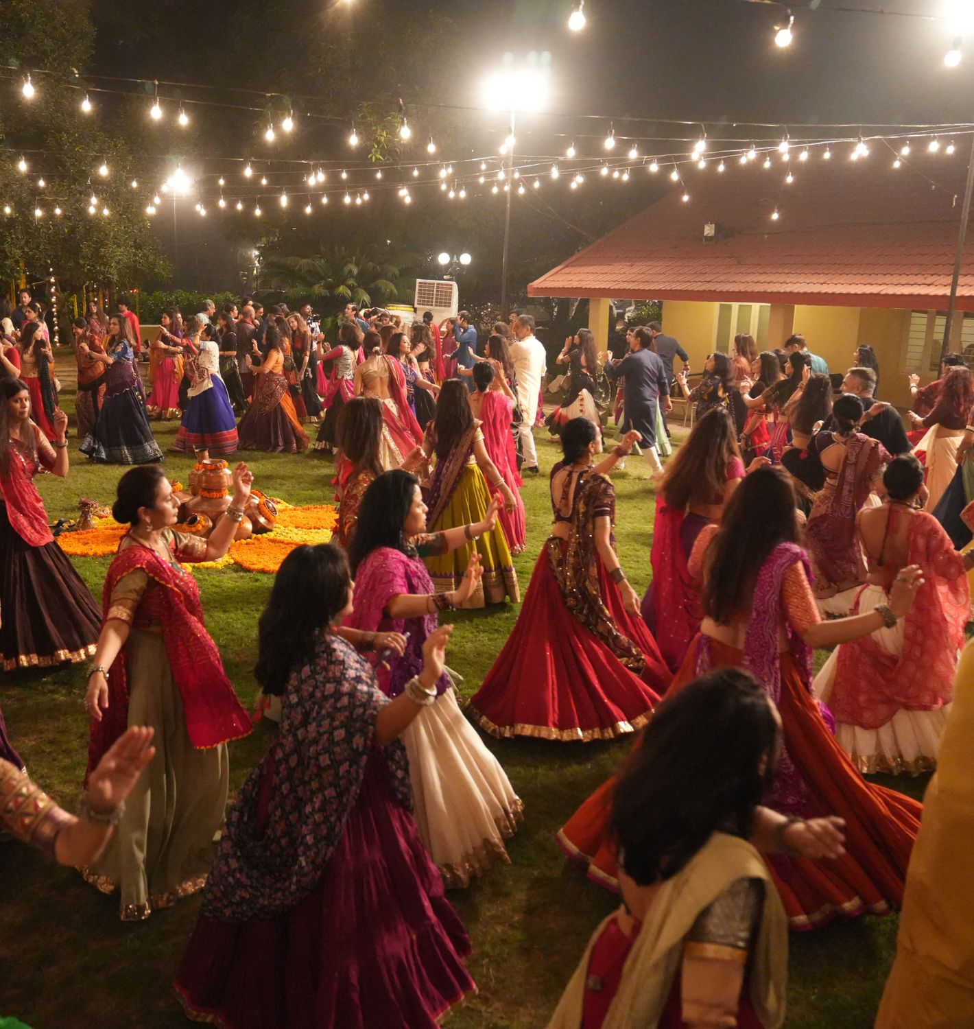 As the day gently unfolded, relaxation beckoned, preparing everyone for the crescendo of the night—Garba under the stars. The dance started with everybody playing garba in unison on the timeless songs sung in a magical voice by the live orchestra; and who can forget Dakla, arguably the most iconic garba song of the day that makes everybody forget the soreness in the feet and forces even the reluctant ones to join the dance! Oh, what a night it was! Magical. Energetic. Unforgettable. A memory etched in the collective soul of our celebration.