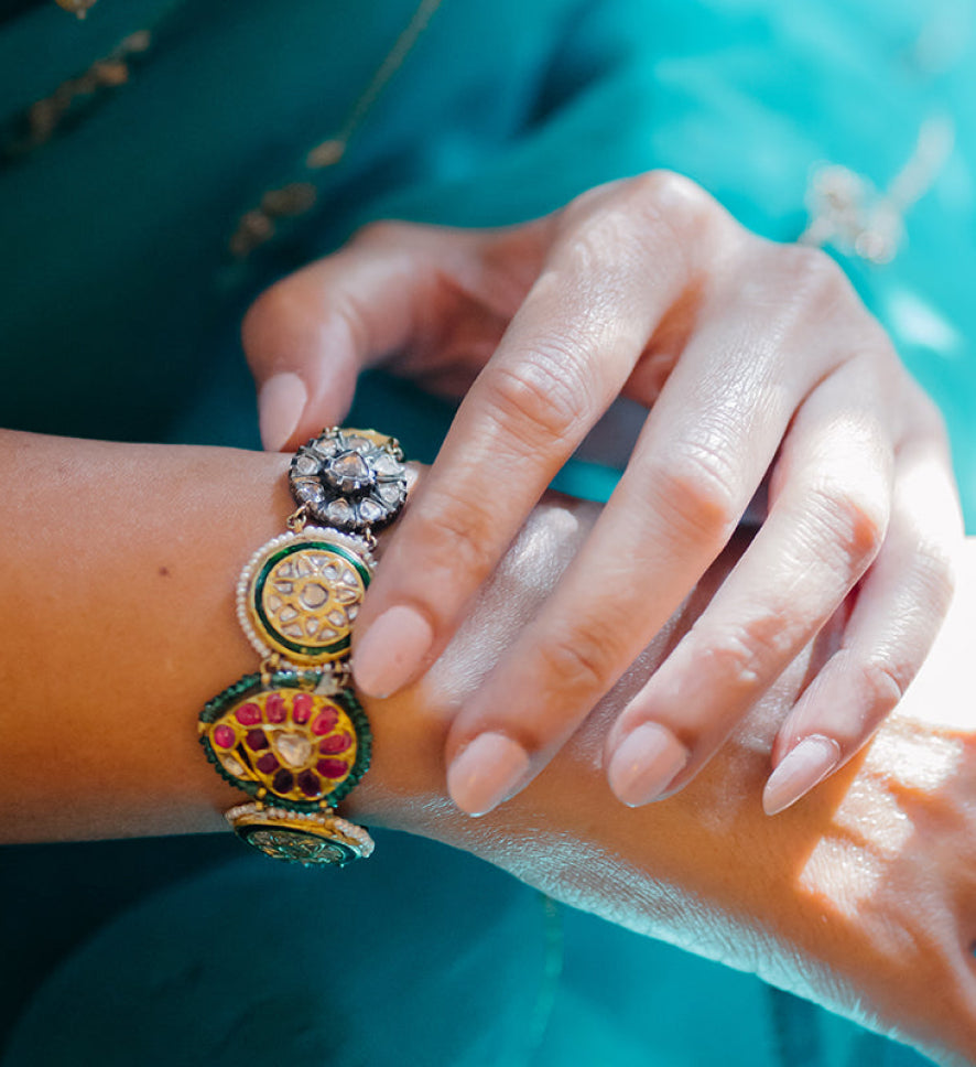 At Aurus, we see ourselves as the custodians of time-honored Indian jewelry-making traditions that must stand the test of time. Working with artisans who are keepers of their skills, we pick every step of the process—from the stringing to surface ornamentation, and stone setting—with deep thought and consideration. From exploring various gold techniques such as filigree and granulation, to experimenting with methods of pirai (stringing) and surface ornamentation like enameling, each design brings together diverse crafts in a nuanced manner.