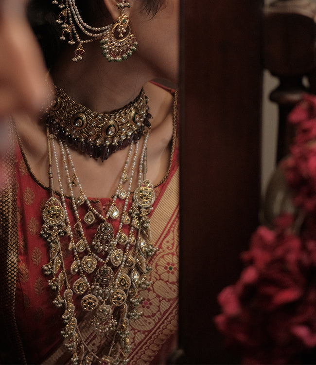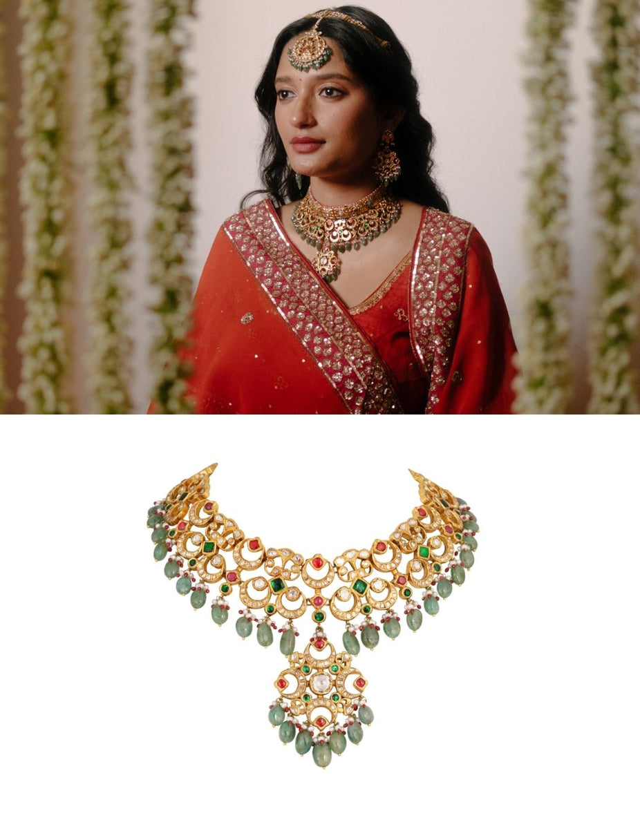 The lovely bride Sujana in her Deccani Navratna Necklace for her reception. She goes on to say, "Absolutely loved the necklace and how well it went with my outfit.❤️"